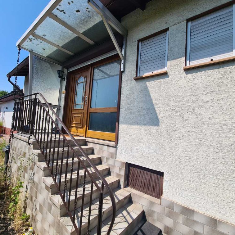 Über eine Außentreppe gelangt man in das schöne Haus.