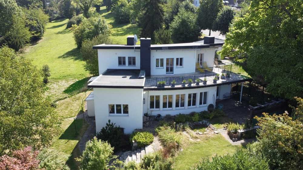 Eine Architektur-Ikone in einzigartiger Hanglage: Das sanft geschwungene Gebäude öffnet sich mit einer fast vollständig verglasten Fassade zur Talseite und inszeniert aus nahezu jedem Raum einen spektakulären Panoramablick. Im Obergeschoss krönt eine weitläufige Dachterrasse das Anwesen – ein Refugium unter freiem Himmel, das an das Sonnendeck eines eleganten Passagierschiffs erinnert. Inspiriert von der Legende eines Kapitäns als Bauherrn, verbinden sich hier maritime Anklänge wie die runde Luke in der Küche mit der geschmeidigen Linienführung des Baukörpers zu einer Komposition von zeitloser Eleganz und unverwechselbarem Charakter.