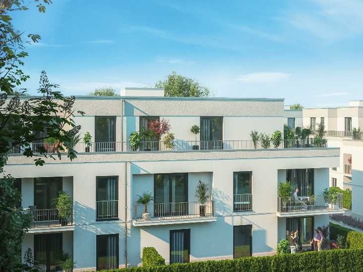 In Osnabrück ganz oben! Die Westerberg Logen bestehen aus nur vier Gebäuden mit insgesamt sieben separate Eingängen, was die Zahl der direkten Nachbarn auf ein Minimum reduziert. Jedes Gebäude beinhaltet lediglich drei Etagen (Erdgeschoss, Obergeschoss, Dach-/Penthousegeschoss), wobei die oberste Etage mit Dachterrassen ausgeführt ist, von denen Sie einen wunderbaren Ausblick in den Park und über Osnabrück genießen können. Die vier Häuser gruppieren sich locker um einen leicht terrassierten, begrünten Hof herum, was der Anlage ihren natürlichen Flair verleiht. Alle Wohnungen haben selbstverständlich großzügige Balkone, Dachterrassen oder – im Erdgeschoss – Terrassen mit privaten Gärten, die den Freiraum nach Draußen erweitern.