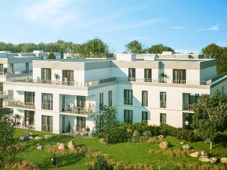 In Osnabrück ganz oben! Die Westerberg Logen bestehen aus nur vier Gebäuden mit insgesamt sieben separate Eingängen, was die Zahl der direkten Nachbarn auf ein Minimum reduziert. Jedes Gebäude beinhaltet lediglich drei Etagen (Erdgeschoss, Obergeschoss, Dach-/Penthousegeschoss), wobei die oberste Etage mit Dachterrassen ausgeführt ist, von denen Sie einen wunderbaren Ausblick in den Park und über Osnabrück genießen können. Die vier Häuser gruppieren sich locker um einen leicht terrassierten, begrünten Hof herum, was der Anlage ihren natürlichen Flair verleiht. Alle Wohnungen haben selbstverständlich großzügige Balkone, Dachterrassen oder – im Erdgeschoss – Terrassen mit privaten Gärten, die den Freiraum nach Draußen erweitern.