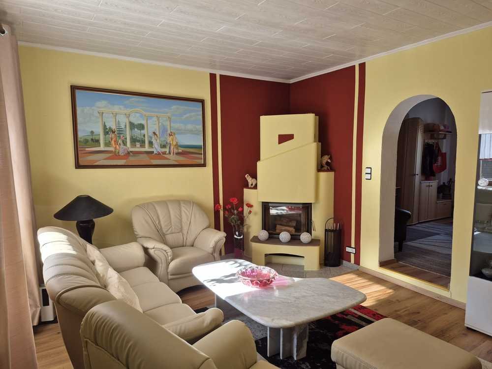 Gleich nach Betreten des Hauses befindet sich linkerhand die Küche. Geradedurch ist erstmal der Eingangsbereich mit Leseecke, dann geht's in die Wohnstube mit Kamin, der ihnen in der kalten Jahreszeit Wohlfühlmomente bescheren wird und dazu noch Heizkosten einsparen lässt. Ein Gäste-Wc und ein großzügiger Vorrats- oder Abstellraum befinden sich ebenfalls auf dieser Etage. Die Zimmer sind dank großer Fenster lichtdurchflutet.