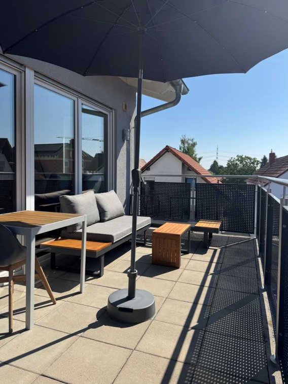 Ein echtes Highlight ist der ca. 13,5 qm große Balkon. Hier lässt sich der Tag großartig mit einem leckeren Frühstück beginnen oder der Feierabend bei einem Glas Wein gemütlich ausklingen.
