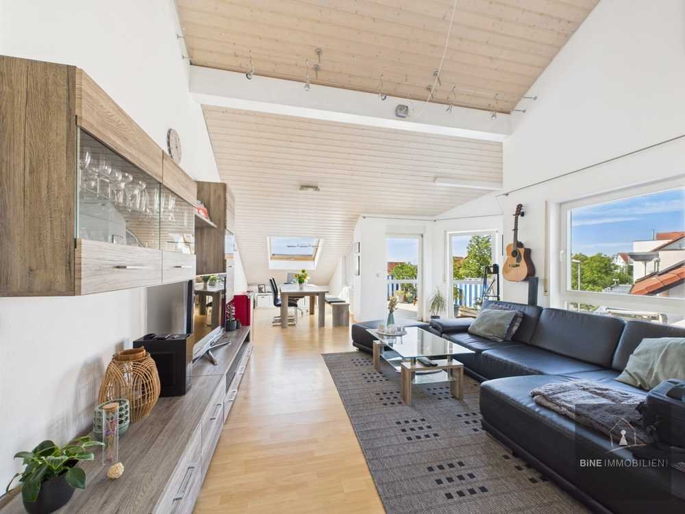 Diese gepflegte und moderne 2-Zimmer-Dachgeschosswohnung besticht durch großzügige, helle Räume, hochwertige Materialien und eine durchdachte Raumaufteilung. Die hohen Decken verleihen dem Wohnbereich eine luftige, offene Atmosphäre und schaffen ein angenehmes Raumgefühl. Der Wohn- und Essbereich ist flexibel nutzbar und bietet direkten Zugang zur Terrasse, die mit einem herrlichen Blick über die angrenzenden Felder überzeugt – ideal für entspannte Stunden im Freien oder gemütliche Abende under freiem Himmel.