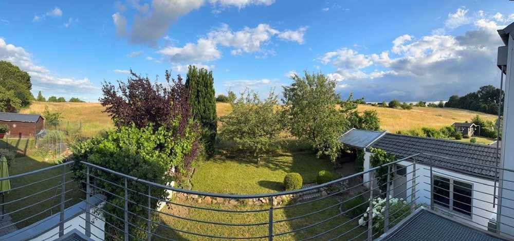 Die 1997 errichtete und 2007 erweiterte Doppelhaushälfte überzeugt durch eine durchdachte Raumaufteilung auf ca. 170 m² Wohnfläche. Bodentiefe Fenster lassen viel Licht in die Räume und eröffnen den Blick in den liebevoll angelegten Garten sowie über die angrenzenden Felder.