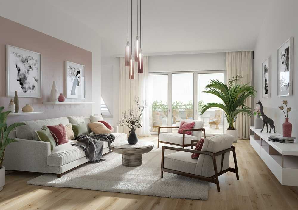 In den drei Gebäuden des Ensembles befinden sich großzügig geschnittene 2-, 3- und 4-Zimmer-Wohnungen. Alle Einheiten werden aus zwei Himmelsrichtungen mit Licht versehen und bieten dank bodentiefer Fenster sowie Terrasse, Loggia oder Balkon viel Helligkeit und teilweise einen wunderschönen Blick in den Rheingau. Große Wohn-/ Ess-Bereiche mit offenen Küchen, Schlafzimmer mit zusätzlichem Bad en Suite in den größeren Wohnungen sowie viele Annehmlichkeiten vom Echtholzparkett mit Fußbodenheizung bis zu praktischen Abstellräumen schaffen ein komfortables und maßgeschneidertes Wohnerlebnis für Alleinlebende, Paare und Familien.