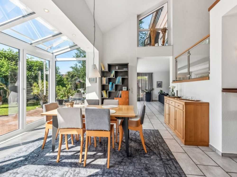 Zu den Highlights gehören fünf Zimmer, die vielseitig nutzbar sind als Eltern- und Kinderzimmer, Arbeitszimmer oder Hobbyraum sowie die offene Galerie, die für eine helle, freundliche Atmosphäre sorgt und die Dachterrasse im Obergeschoss der Immobilie. Der Wintergarten dient als angenehme Verlängerung des Wohnbereichs und ermöglicht entspanntes Verweilen zu jeder Jahreszeit. Die Gas-Brennwerttherme ca. aus 2022 sorgt für effiziente Wärme und niedrige Betriebskosten, während die Dachsanierung im Jahr ca. 2017 eine robuste Dachkonstruktion und zeitgemäße Instandhaltung attestiert. Das Dachgeschoss bietet Schlaf- bzw. Nutzräume, die flexible Optionen schaffen. Das großzügige Eigentumsgrundstück mit Süd-Ausrichtung von ca. 517 m² bietet Platz für Entspannung, Gartenfreuden und Gestaltungsideen.