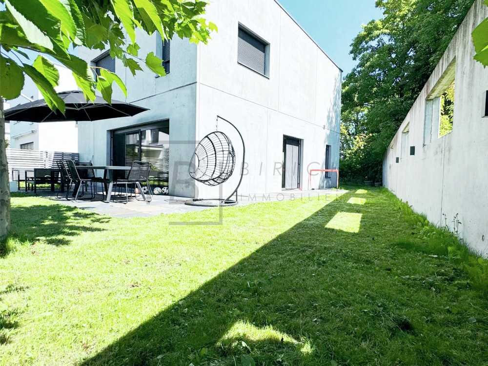Der offene Wohn- und Essbereich beeindruckt mit modernen Betonwänden und einer hochwertigen Einbauküche mit zentraler Kücheninsel, die zum Kochen, Genießen und Gästeempfangen einlädt. Von hier aus gelangen Sie direkt auf die über 35 m² große Terrasse in sonniger Süd-West-Ausrichtung, die durch eine hochwertige Beton-Sichtschutzwand maximale Privatsphäre bietet. Der pflegeleichte Garten mit gemütlicher Sitzmöglichkeit und praktischem Gerätehaus lädt zum Entspannen ein.