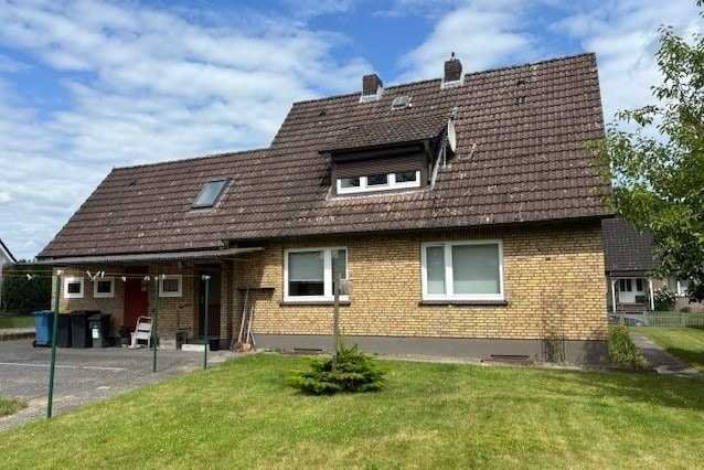 Das Haus befindet sich auf einem gepflegten Grundstück mit Gartenfläche. Besonders hervorzuheben ist die vorhandene Doppelgarage, die bequem Platz für zwei Fahrzeuge bietet und die überdachte Terrasse mit anliegendem Schuppen/ Werkstatt. Die Auffahrt wurde 2008 neu gepflastert und Glasfaser liegt in der Straße.