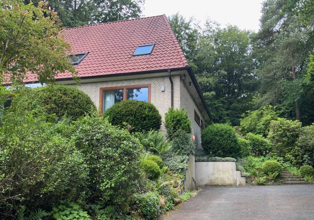 Das großzügige familiengerechte Haus aus dem Jahr 1960 steht auf einem liebevoll angelegten, sanft ansteigenden Grundstück mit altem Baumbestand.