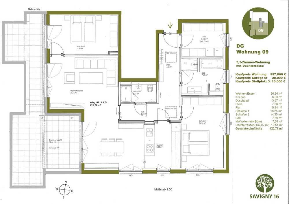 * herrliche Dachterrasse in Südwestlage mit 37 m²