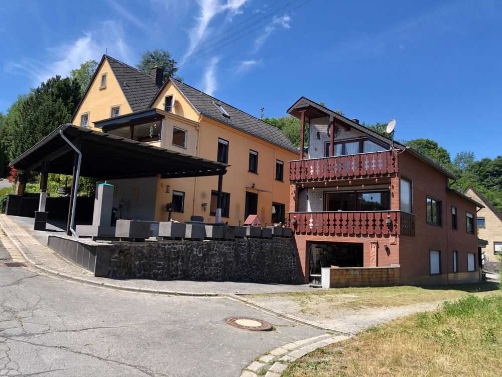 Das Haupthaus wurde 1972 in massiver Bauweise errichtet und 1992 durch einen Anbau erweitert. Viele Gewerke wurden im Zuge des Anbaus erneuert. Im Eingangsbereich steht ein in Granitbelag gefasster Kaminofen, welcher durch die rückseitige Verbindung zum Wohnzimmer einen Großteil des Hauses mit Wärme versorgt. Vom Wohnzimmer erreichen Sie den ca. 9 m² großen Balkon mit Süd-Ost-Ausrichtung. Im großen Schlafzimmer steht ein 2. Kamin zur Unterstützung der Ölzentralheizung. Weiterhin befinden sich im Erdgeschoss noch die Küche mit zwei neuwertigen Küchenzeilen sowie ein 2012 umgebautes, altersgerechtes Badezimmer.