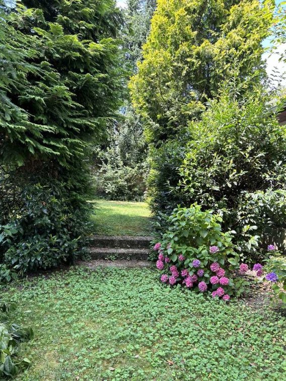 Der Garten bietet Platz für mehrere Sitzgruppen, sodass auch Geschwister in unterschiedlichem Alter mit ihren Freunden jeweils einen separaten Platz finden können. Ebenso können mehrere Personen Home Office im Grünen nutzen.