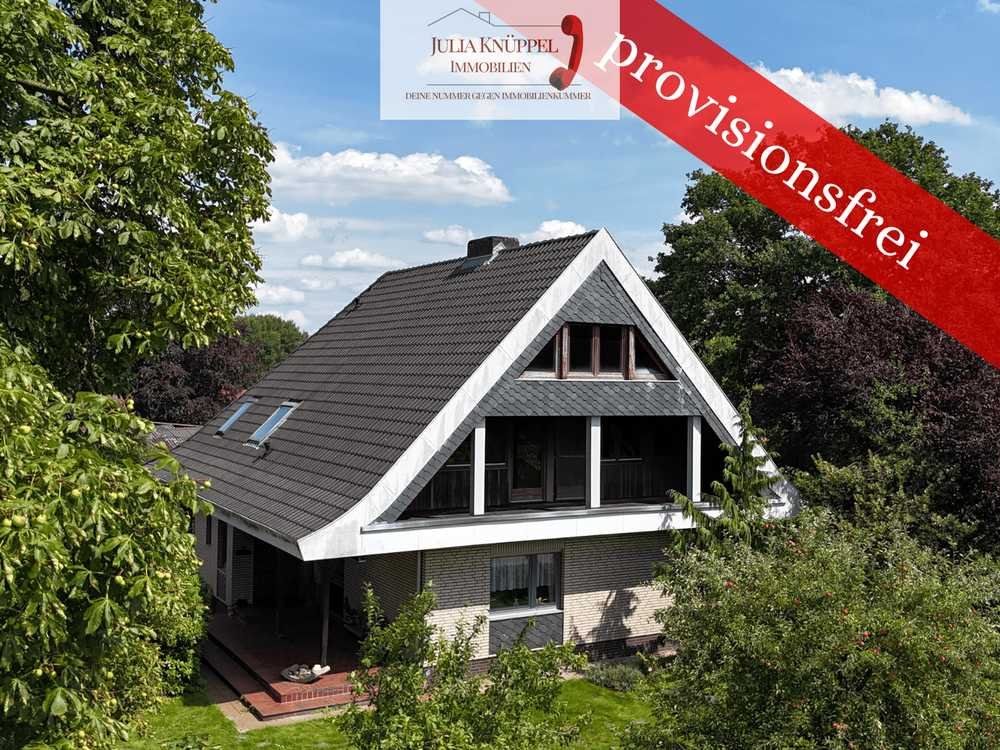 Großzügiges Einfamilienhaus in Schwarme, OT Spraken – kein Haus von der Stange. Rund 265 m² Wohnfläche plus ca. 65 m² Ausbaureserve im Obergeschoss und zusätzlicher Platz im Dachgeschoss. Große Diele mit offenem Fachwerk und gemauertem Kamin, direkter Terrassenzugang von Diele, Wohnzimmer und Schlafzimmer. Eingewachsene Terrasse mit zweitem Kamin, Balkon mit Weitblick bis zur Mühle. 1.408 m² Grundstück, liebevoll angelegt mit altem Kastanienbaum, Carport im Fachwerkstil, voll unterkellert (ca. 160 m², sanierungsbedürftig), Heizung von 1992. Ländlich, aber in 10–15 Minuten in den umliegenden Orten.
