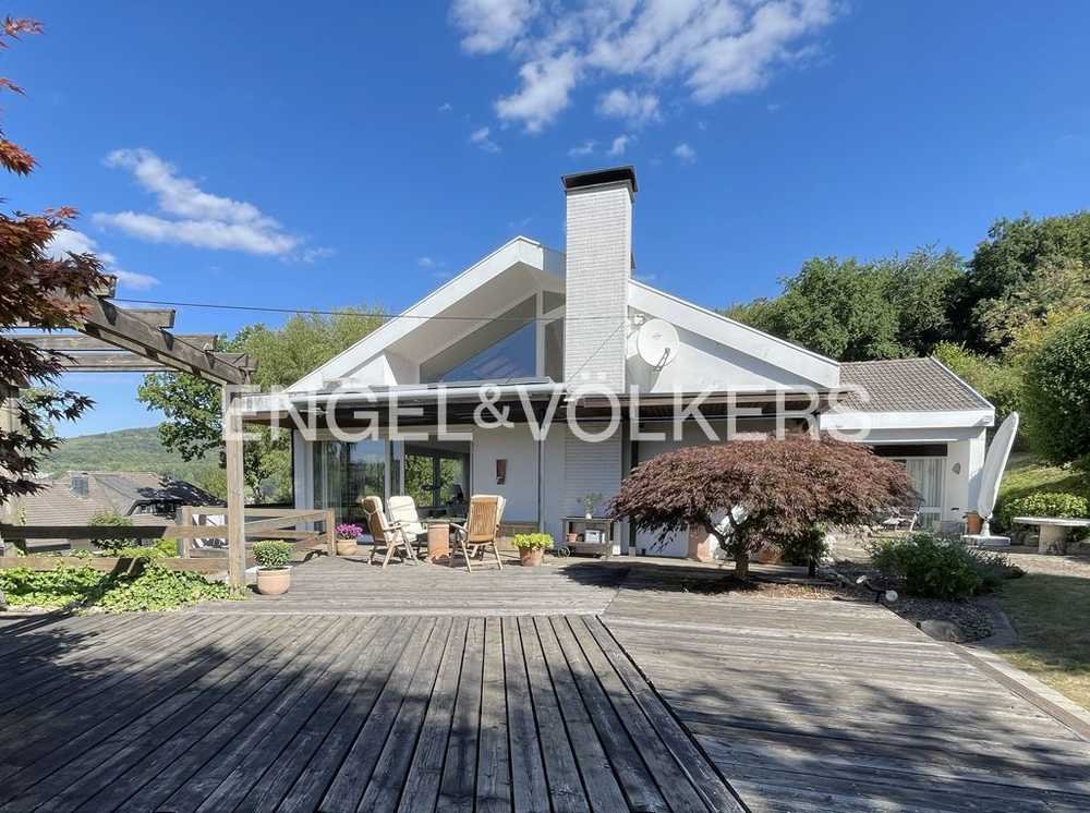 Dieses freistehende Architektenhaus aus dem Jahr 1968 vereint Großzügigkeit, Stil und eine durchdachte Raumaufteilung. Mit rund 240 m² Wohnfläche, einem weitläufigen Grundstück von 1.464 m² bietet es ideale Voraussetzungen für Familien, die viel Platz, Komfort und einen Hauch von Exklusivität schätzen. Der großzügige Wohnbereich mit seinen weitläufigen Fensterfronten sorgt für lichtdurchflutete Räume und eröffnet zugleich einen herrlichen Ausblick ins Tal. Ein offener Kamin im Wohnraum schafft behagliche Wärme und unterstreicht die gemütliche Atmosphäre. Insgesamt sechs Schlafzimmer und drei Badezimmer stehen zur Verfügung und ermöglichen individuelle Wohn- und Nutzungskonzepte. Eine separat zugängliche Einliegerwohnung bietet zusätzliche Flexibilität – sei es für Gäste, ein Homeoffice oder zur Vermietung. Besonders hervorzuheben ist der wunderschöne Garten, der viel Platz zur Entfaltung lässt und durch seine Größe und Gestaltungsmöglichkeiten überzeugt. Auf der großen Terrasse können Sie entspannte Sonnenstunden genießen oder gesellige Abende mit Familie und Freunden verbringen. Die ruhige Lage mit Blick ins Grüne macht dieses Haus zu einem idealen Rückzugsort. Abgerundet wird das Angebot durch eine moderne Gas-Zentralheizung aus dem Jahr 2024, eine Garage sowie mehrere Stellplätze, die für höchsten Wohnkomfort sorgen.