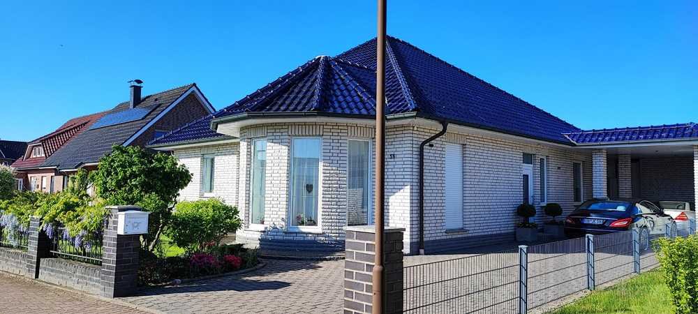 Bei dieser ansprechenden Immobilie handelt es sich um ein Bungalow mit Erker und einem Carport. Die Terasse ist süd-west ausgerichtet und überdacht. In einem Badezimmer mit Dusche , Badewanne und einer kleine Sauna und dem separaten Gäste-WC können alle entspannt ihrer Badroutine nachgehen und es sich in fünf attraktiven Zimmern der Immobilie gemütlich machen. Das highlight ist das großzügige lichtdurchflutete Wohnzimmer mit dem halbrundem Erka. Aus der Küche gelangen Sie in den großzügigen grünen Garten der Sie bei schönem Wetter zum relaxen einläd. Ein Gartenhäuschen und viel Platz bietet ihnen viele Möglichkeiten der Freizeitaktivität. Im Dachgeschoß finden Sie weiteren Raum von c.a. 24 qm der als Stauraum genutzt wird. Dieser Raum ist Isoliert und könnte auch als Erweitert Wohnraum genutzt werden.