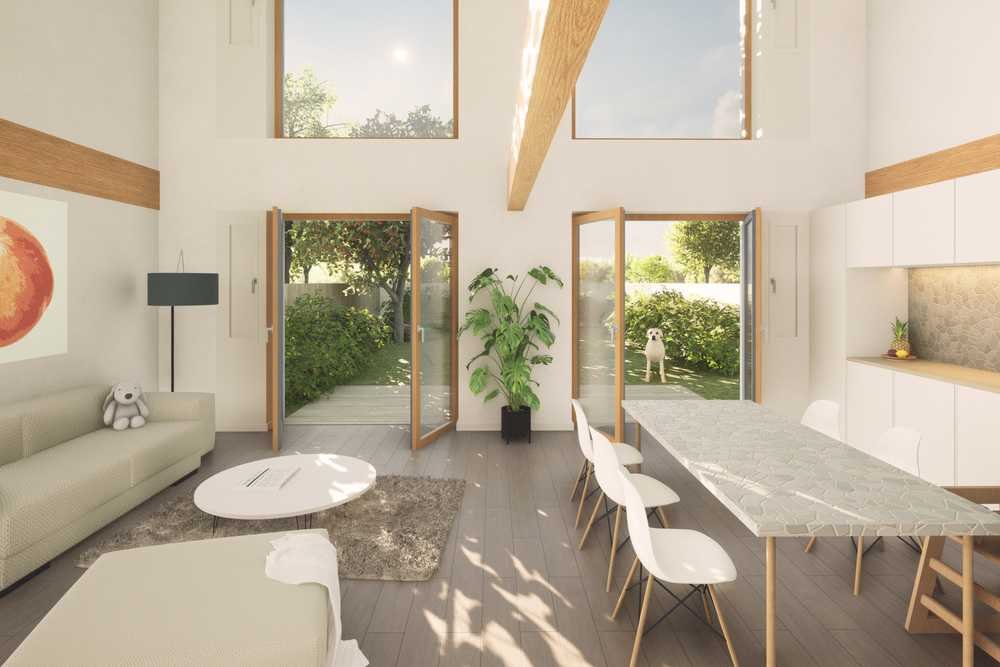 Nachhaltig & behaglich: Gebaut wird ökologisch in moderner Holzrahmenbauweise – mit hervorragender Dämmung und Fußbodenheizung für angenehme Wärme zu jeder Jahreszeit. Die klimaneutrale Wärmeversorgung und eine eigene Photovoltaikanlage auf dem Dach machen Ihr Zuhause zukunftsfähig. Ihr Gartenanteil (ca. 60 m²) wird Ihr privates Grün – und im Quartier entstehen zusätzliche Freiflächen zum Begegnen, Spielen oder gemeinsam Gärtnern – wenn Sie möchten.