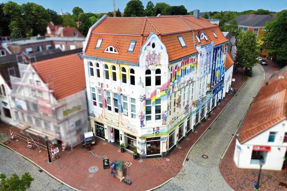 Inmitten der historischen Altstadt von Leer befindet sich dieses außergewöhnliche und weit über die Stadtgrenzen hinaus bekannte Wohn- und Geschäftshaus. Das unter Denkmalschutz stehende Gebäude, mit seiner aufwendig gestalteten Fassade, prägt seit vielen Jahrzehnten das Stadtbild und wurde kürzlich mit großer Sorgfalt und Liebe zum Detail kernsaniert. Dabei wurde besonderer Wert darauf gelegt, den einzigartigen Charakter der Immobilie zu bewahren und gleichzeitig modernen Wohnkomfort zu schaffen. In den oberen drei Geschossen befinden sich neun hochwertig ausgestattete Wohneinheiten mit einer Gesamtwohnfläche von ca. 633 m². Die Wohnungen verfügen über durchdachte Grundrisse, stilvolle Bäder und lichtdurchflutete Räume. Ein Fahrstuhl erleichtert den Zugang zu den einzelnen Einheiten. Das Erdgeschoss beherbergt eine großzügige Geschäftseinheit mit einem repräsentativen Verkaufsraum, separaten Personalräumen, Kunden-Toiletten sowie einem praktischen Lagerbereich mit Rolltor zur Straße. Die Lage im Herzen der belebten Altstadt sorgt für eine hohe Sichtbarkeit. Die Immobilie kombiniert historischen Charme mit moderner Ausstattung und bietet zugleich attraktive Nutzungsmöglichkeiten sowohl im Wohn- als auch im Gewerbebereich. Die zentrale Lage, die qualitätsvolle Sanierung und die traditionsreiche Geschichte machen dieses Objekt zu einem seltenen Investment. Melden Sie sich gerne bei uns für eine Besichtigung, um dieses Juwel live erleben zu können.