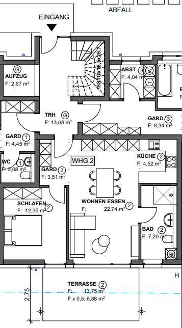 Ein Highlight dieser Wohnung ist eine 14 m² große Terrasse mit Süd-West-Ausrichtung. Zudem verfügt die Wohnung über einen Gartenanteil.