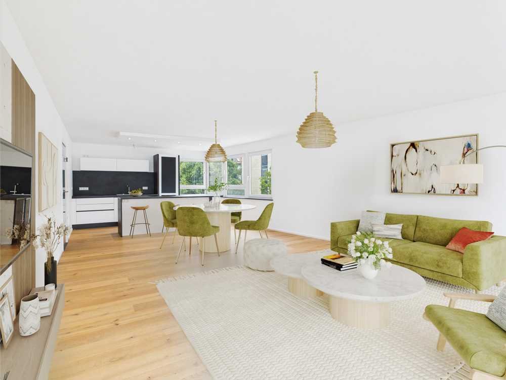Mit einer Wohnfläche von ca. 131,40 m² ist diese Wohnung nicht nur großzügig, sondern auch konsequent durchdacht. Der offene Wohn- und Essbereich mit rund 45 m² fungiert als architektonisches Herzstück der Einheit – lichtdurchflutet durch bodentiefe Fensterelemente, mit harmonischem Übergang zur offenen Küche und fließendem Zugang zur Dachterrasse. Die klare Raumführung vermittelt Weite, Transparenz und gleichzeitig Geborgenheit.