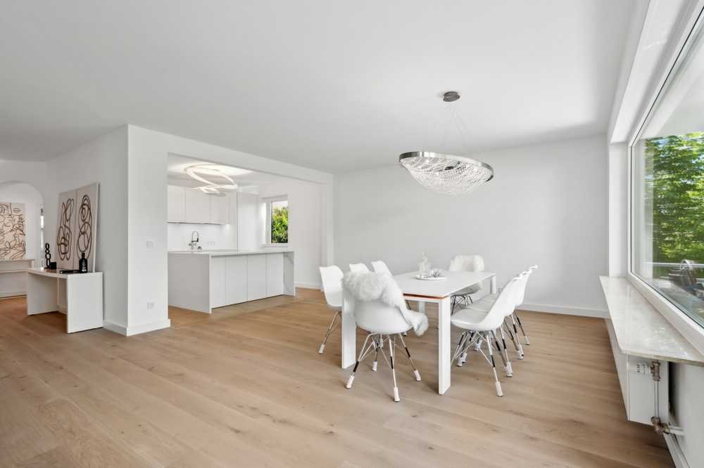 Die für den Umbau der Wohnung bewusst gewählte offene Raumgestaltung verbindet Wohn- und Lebensbereiche auf stilvolle und sehr harmonische Weise. Ein Herzstück dieser einzigartig schönen Wohlfühloase ist die hochwertige Designerküche, die nicht nur optisch überzeugt, sondern auch funktional höchste Ansprüche erfüllt. Ausgestattet mit zahlreichen technischen Raffinessen – darunter ein Quooker (kochendes Wasser auf Knopfdruck), eine herausfahrbare Dunstabzugsfront, hochwertige Miele Geräte und durchdachte Stauraumlösungen – wird die Küche zum Mittelpunkt für Genießer und Gastgeber gleichermaßen. Vom angrenzenden Essbereich genießt man herrliche Blicke nach draußen. In den warmen Monaten des Jahres lädt der große, viel Privatsphäre bietende Balkon zu genussvollen Stunden ein. Der offene Kamin im Wohnbereich sorgt an kühlen Abenden für besondere Gemütlichkeit und verleiht dem Wohnraum zusätzliches Flair.