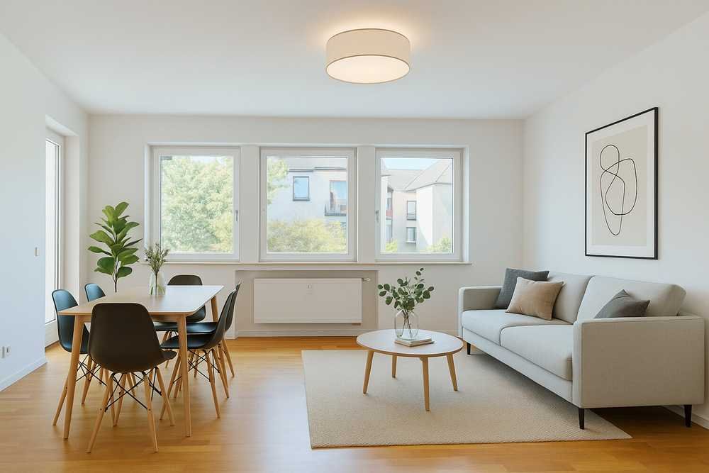 Diese charmante Etagenwohnung mit circa 95 m² Wohnfläche überzeugt durch modernen Stil und ihre grüne Lage direkt am Park. Sie befindet sich im zweiten Obergeschoss eines gepflegten Mehrfamilienhauses aus dem Jahr 1960 und wurde 2012 vollständig renoviert.