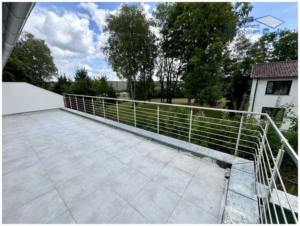 Die Doppelgarage bietet Platz für zwei Fahrzeuge und zusätzlichen Stauraum, ein Garagenstellplatz und ein Außenstellplatz sind der Wohnung zugeordnet. Die sonnige Dachterrasse mit Blick ins Grüne wird Sie bei einer Besichtigung mit Sicherheit begeistern.