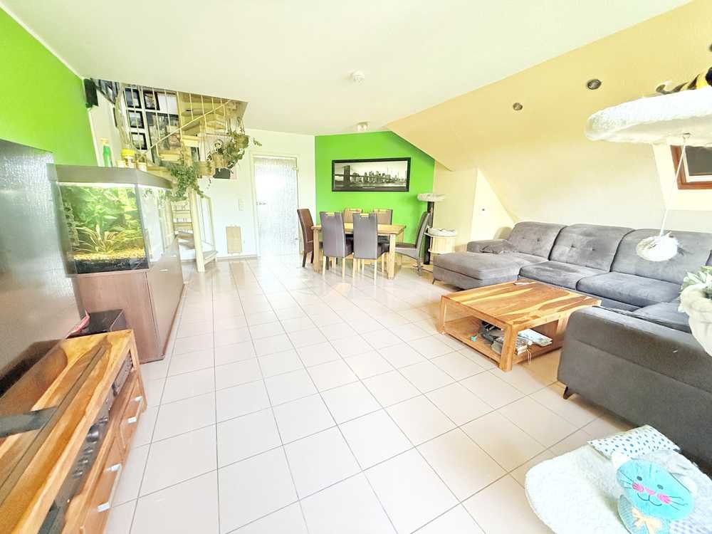 Die angebotene Maisonette-Wohnung erstreckt sich über zwei Ebenen und bietet auf rund 80 m² Wohnfläche vier gut geschnittene Zimmer. Die untere Ebene überzeugt mit normaler Deckenhöhe und klaren Raumstrukturen, die obere Ebene im Dachgeschoss mit Schrägen sorgt für ein offenes und individuelles Wohngefühl.