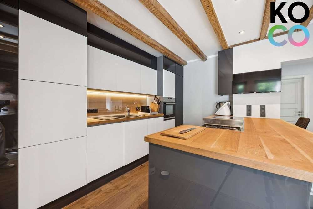 Das Haus erstreckt sich über zwei Etagen mit ausgebautem Dachgeschoss und verfügt zusätzlich über einen großzügigen Keller. Im Erdgeschoss befindet sich ein offener Wohn- und Essbereich mit Kamin sowie eine hochwertige Designküche mit Kochinsel, Gas- und Cerankochfeld. Ein Gäste-WC mit Dusche ergänzt diese Etage. Das Obergeschoss bietet zwei Schlafzimmer, alle klimatisiert, sowie ein großes Tageslichtbad mit Whirlpool, Dusche und Zugang zum Balkon. Das Dachgeschoss umfasst zwei weitere klimatisierte Räume.