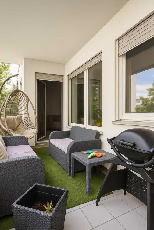 Das Herzstück der Wohnung bildet das ca. 25 m² große Wohn- und Esszimmer, das durch seinen direkten Zugang zum gemütlichen Balkon ein besonderes Highlight bietet. Der ca. 5 m² große Außenbereich mit Urlaubsflair lässt sich sowohl vom Wohnzimmer als auch von der Küche aus betreten und bietet viel Raum für individuelle Gestaltung.
