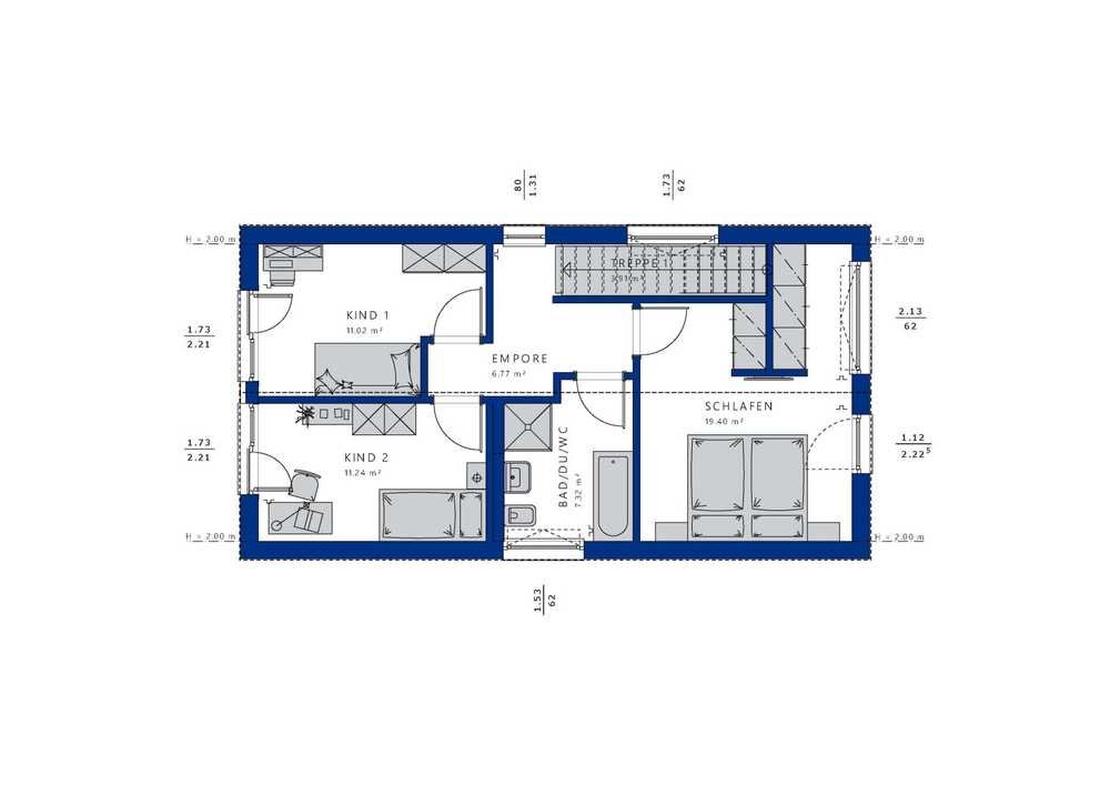 Im Obergeschoss finden Sie 2 schöne Kinderzimmer.