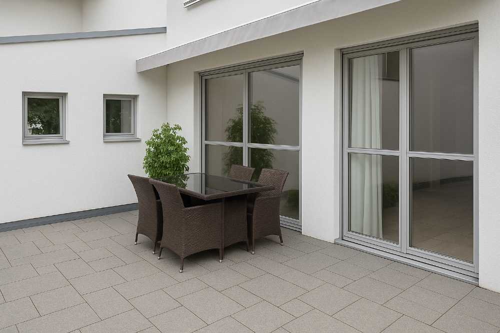 Der Außenbereich überzeugt durch eine sonnige Terrasse. Der kleine Gartenanteil ist über den Aussenbereich erreichbar. Zwei Außenstellplätze direkt am Haus runden das Angebot ab.