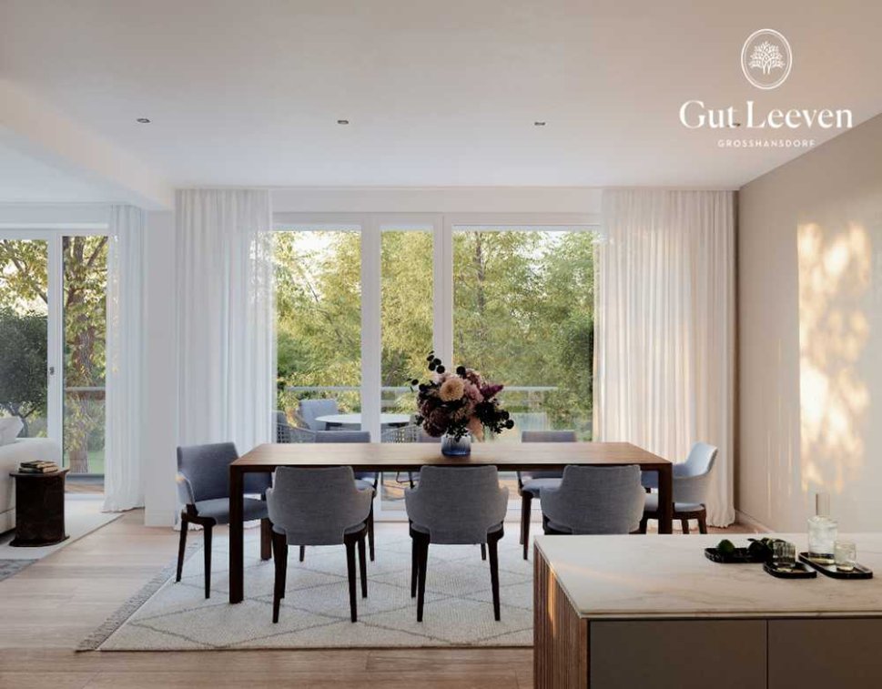 Besonders bemerkenswert ist die weitläufige Parkanlage, die zusammen mit dem arrondierten Wald zum Verweilen, Spazieren oder zu sportlichen Aktivitäten einlädt – je nach Vorliebe der Bewohner. Hier verbindet sich das Leben im Grünen mit einer außergewöhnlichen Lebensqualität.