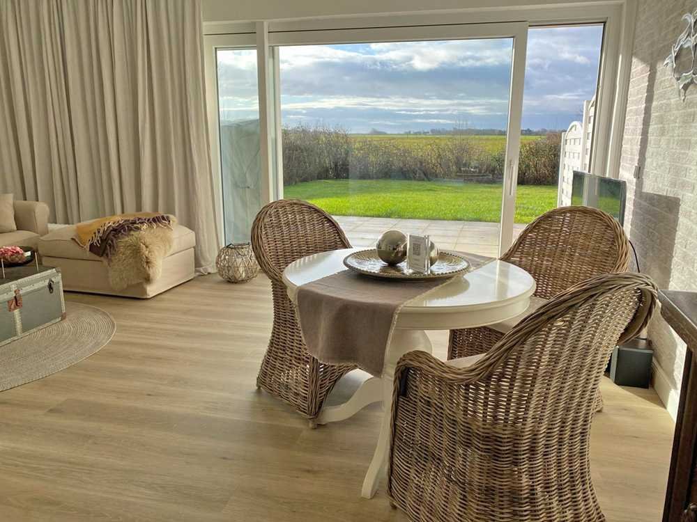Die Ausstattung umfasst einen hellen Wohn-/Essraum mit bodentiefer Verglasung zur Terrasse und Garten sowie einer neuwertigen, offenen Küche, einen großen Doppel-Schlafraum, ein modernes Duschbad sowie einen Flur im Eingangsbereich. Unter dem neuwertigen Vinyl-Boden befindet sich eine ökonomische Fußbodenheizung.