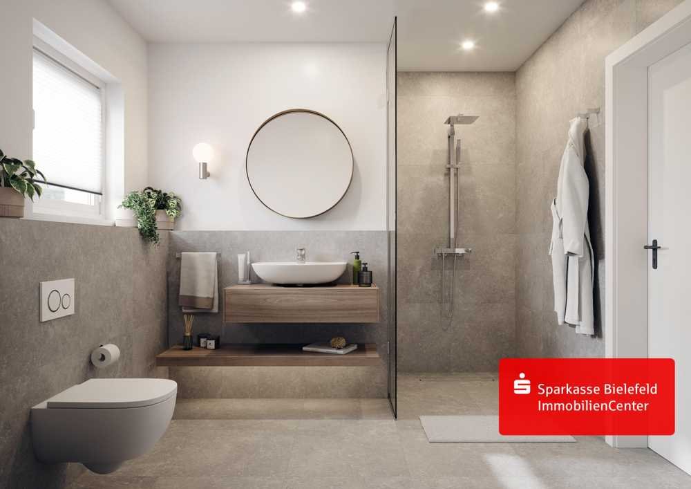 In beliebter Wohnlage in Sennestadt entsteht diese moderne und KfW-QNG geförderte Neubauwohnung in zeitloser Architektur und mit hochwertigen Ausstattungsmerkmalen, im Erdgeschoss eines Mehrfamilienhauses mit insgesamt 11 Wohneinheiten. Sie verfügt über ca. 62 m² Wohnfläche, aufgeteilt in Wohn-Essbereich, Tageslichtbad, ein weiteres Zimmer und einen Abstellraum. Der lichtdurchflutete Wohn- Essbereich führt hinaus auf die Terrasse, die dazu einlädt, sonnige Tage zu genießen oder gemütliche Abende im Freien zu verbringen. Die Fußbodenheizung sorgt für ein angenehmes Raumklima zu jeder Jahreszeit. Alle Fenster – mit Ausnahme der Fenster in Abstellräumen – erhalten elektrische Rollläden und 3-fach Verglasung. Das Badezimmer wird mit ästhetisch schönen Fliesen und Armaturen zur Wohlfühloase. Ein PKW-Stellplatz (zzgl. 10.0000 €) kann separat erworben werden. Gerne stellen wir Ihnen weitere Details zu diesem Projekt in einem persönlichen Gespräch vor. (Exposé 10421-3)