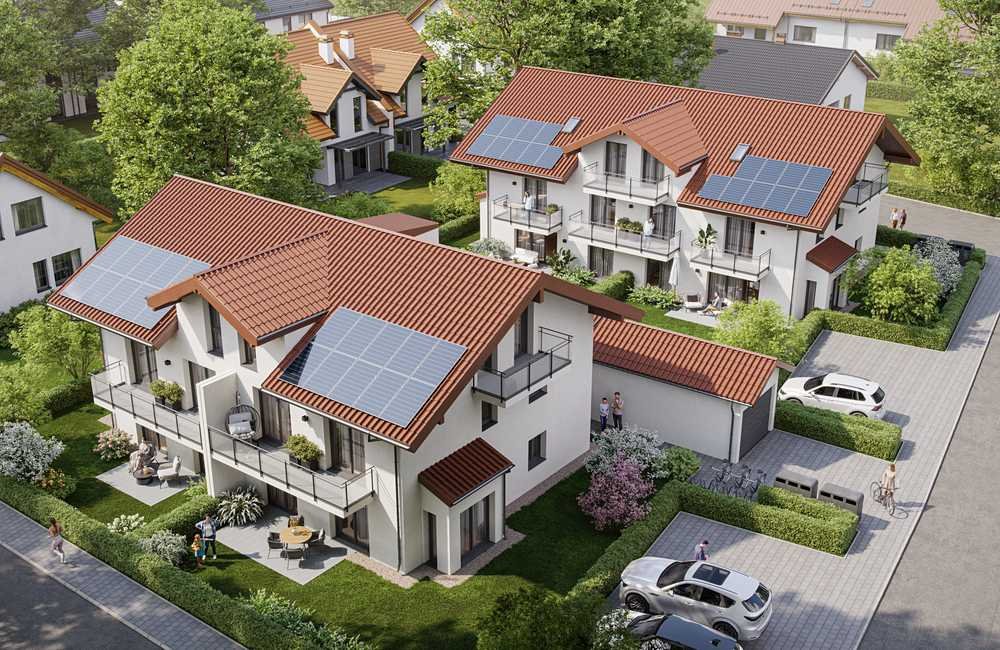 Von der nachhaltigen Wärmepumpe in Verbindung mit Photovoltaik über die Fußbodenheizung bis zu den schall- und wärmeisolierenden Fenstern haben wir für eine hervorragende Energiebilanz in Ihrem neuen Zuhause gesorgt.