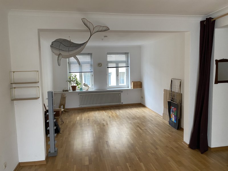 Zwei der großen Wohn- oder Schlafzimmer sind Durchgangsräume, die nur indirekt an Korridor bzw Treppenhaus angeschlossen sind.