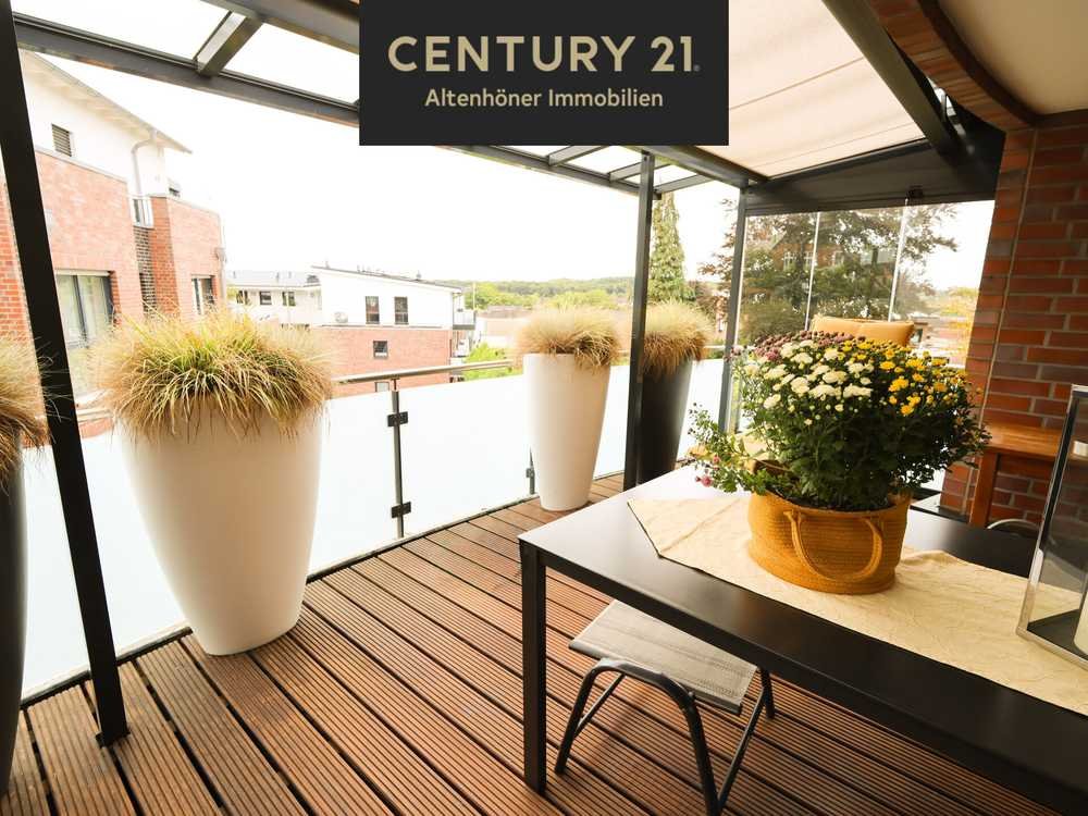 Wenn Sie gerne an der frischen Luft sind und dennoch für sich allein sein möchten, gibt Ihnen der ca. 14m² Balkon die Gelegenheit dazu. Er ist mit Sicherheitsglas überdacht und mit Glaselementen versehen, die Sie vor Wind schützen und Ihnen ein privates Wohnambiente vermitteln. Im Sommer sorgt eine elektrische Beschattung für die nötige Abkühlung. Von hier aus haben Sie auch einen tollen Ausblick über das Münsterland.