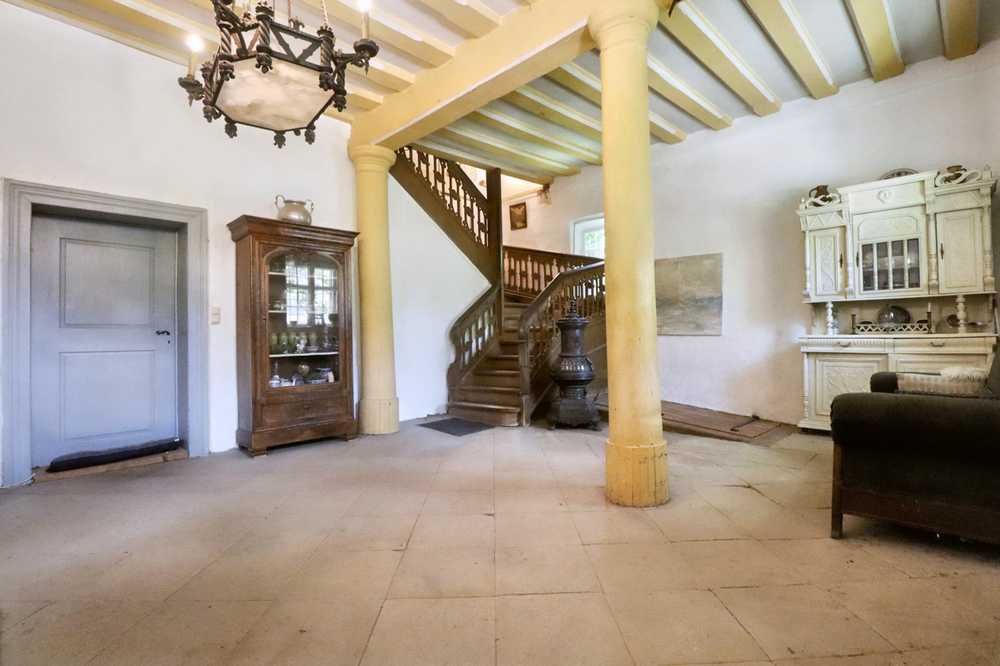 Das Hauptgebäude ist funktional intakt und sofort nutzbar und bietet zugleich auch Potenzial für Modernisierungen, die den historischen Charakter bewahren und den Wohnkomfort noch erweitern können. Die solide Bausubstanz, großzügige Raumzuschnitte und hochwertige historische Materialien bilden eine hervorragende Grundlage für eine individuelle Aufwertung.