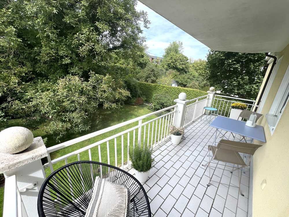 Eine außergewöhnlich gepflegte 2 Zimmer-Wohnung mit Balkon und Ausblick ins Grüne auf einem prächtigen Walnussbaum.