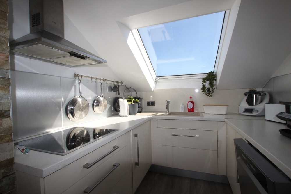 Es stehen vier gut geschnittene Schlafzimmer und ein großes Wohnzimmer zur Verfügung. In allen Zimmern sind praktische und raumfördernde Dachgauben vorhanden, die neben dem hoch angesetzten Kniestock ein sehr gutes und großzügiges Raumgefühl entstehen lässt. Die helle Küche ist mit einer gepflegten und modernen Einbauküche (ca. Bj. 2018) ausgestattet. Die Elektrogeräte wurden teilweise frisch erneuert (z.B. Ceran-Kochfeld, Spülmaschine). Des Weiteren befindet sich auf dieser Etage ein innen liegendes Badezimmer mit Duschwanne sowie ein Gäste-WC und ein sehr praktischer und großer Abstellraum.
