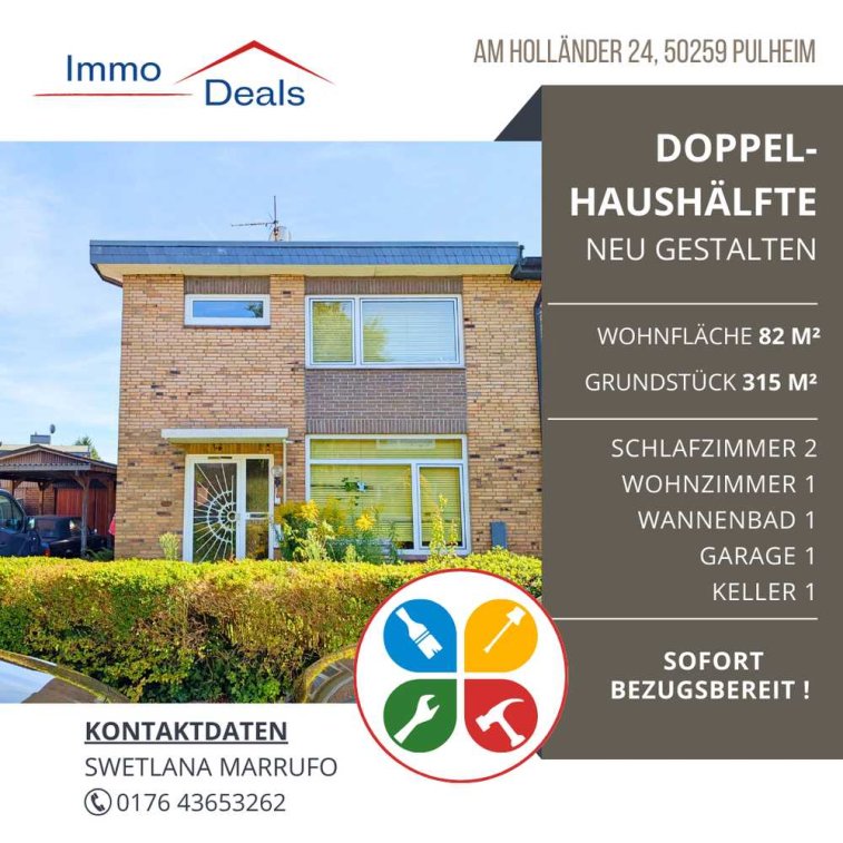 Entdecken Sie Ihr neues Zuhause in dieser charmanten Doppelhaushälfte in Pulheim. Diese Immobilie bietet mit ihren 80 m² Wohnfläche und einem großzügigen Grundstück von 315 m² viel Platz für Familien oder Paare, die sich nach einem gemütlichen Rückzugsort sehnen.