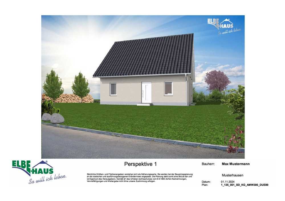 Dieses innovative Elbe-Haus® wird in massiver Bauweise von qualifiziertem Fachpersonal errichtet. Wir planen und projektieren nach Ihren Vorstellungen und Wünschen und somit ist wirklich jedes Haus einzigartig. Beachten Sie bitte, dass das abgebildete Haus lediglich ein Bebauungsbeispiel ist. Das Grundstück kann unter Berücksichtigung der örtlichen Bauvorschriften mit Ihrem Wunschhaus von Elbe-Haus® errichtet werden.