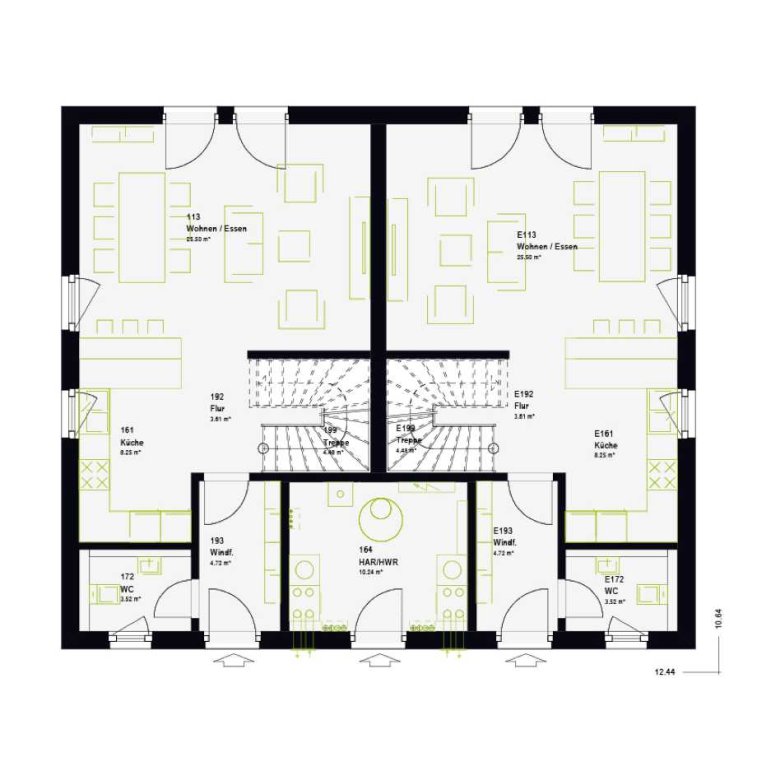 Geradlinig und klar in der Form – dieses Doppelhaus ist mit seinen ca. 218 m² Nettogrundfläche das ideale Doppelhaus für alle Puristen mit Anspruch. Im Erdgeschoss bietet die clever geplante Fläche Platz für den taghellen Wohn-Ess-Bereich mit offener Küche, das Gäste-WC sowie den Hauswirtschaftsraum, die Diele und den Flur. Im Dachgeschoss wartet das pure Leben. Dort stehen zwei Kinderzimmer, das Elternschlafzimmer und das Familienbad nebst Flur als Raum für die persönliche Entfaltung bereit. Dieses Doppelhaus ist die attraktive Lösung für kreative und junge Familien. Baufamilien können nach eigenem Geschmack den Grundriss des Hauses variieren und vom Wintergartenelement über den Traufenerker bis zur Doppelgarage vielfältige Architektur-Upgrades einplanen. Dadurch besteht die Möglichkeit, das Haus geräumiger zu machen und von außen die Fassaden aufzuwerten.