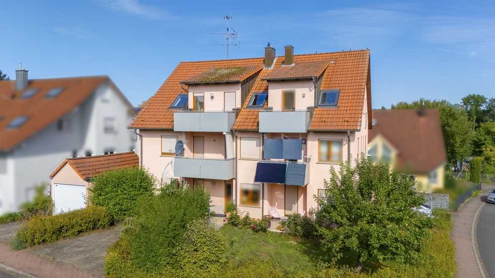 Die Dachgeschosswohnung befindet sich in einem kleinen 6-Familienhaus in Kürnach, in absolut idyllischer Umgebung.