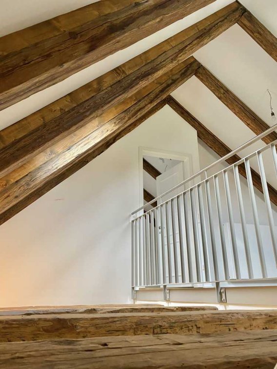 Ein echtes Highlight ist der außergewöhnliche Grundriss über zwei Etagen. Er schafft ein großzügiges Raumgefühl, viel Helligkeit und eine offene Wohnatmosphäre. Die zahlreichen Fenster lassen Tageslicht in alle Räume und unterstreichen die charaktervollen Details des historischen Bauwerks.