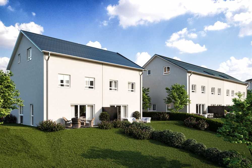 Das neue Wohnensemble vereint moderne Doppel- und Reihenhäuser mit durchdacht geschnittenen Eigentumswohnungen in einem Mehrfamilienhaus.