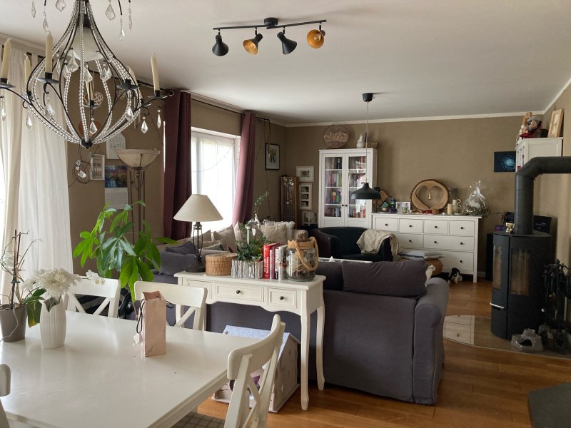 Zur Ausstattung gehören ein Kaminofen und eine PV Anlage mit 7,5 KW bei der der Vertrag 2014 abgeschlossen wurde. Zur Besonderheit gehören Eichen Dielenböden geölt auf Holzbalkenlagerung im Erdgeschoss, so wie im Obergeschoss. Eine Lüftungsanlage und ein Carport mit zwei Stellplätzen + zwei Außenstellplätzen runden das Angebot noch ab.