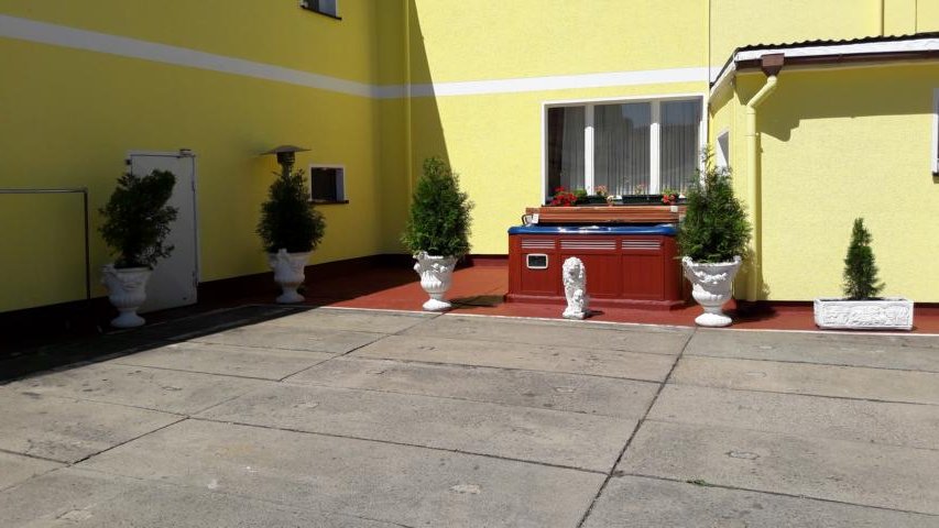 400 qm befestigte Hof, Grillplatz, Parkplatz. Sauna, Waschmaschine, Wäschetrockner, Infrarot Kabine.
