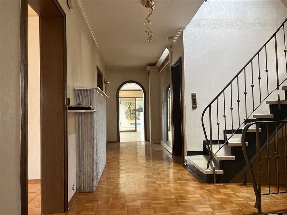Das Erdgeschoss besticht durch ca. 170 m² Fläche und umfasst zwei Schlafzimmer, ein großes Wohnzimmer sowie eine Küche. Der Anbau beherbergt einen außergewöhnlichen Wellnessbereich mit Indoor-Schwimmbad (5 x 3 m), Sauna, Sanitärbereich und einen lichtdurchfluteten Wintergarten, der den Blick ins Grüne freigibt. Die Böden des Altbaus sind mit hochwertigem Parkett ausgelegt, während der Wellnessbereich helle Fliesen mit Fußbodenheizung bietet – ein Mix aus Charme und Komfort.