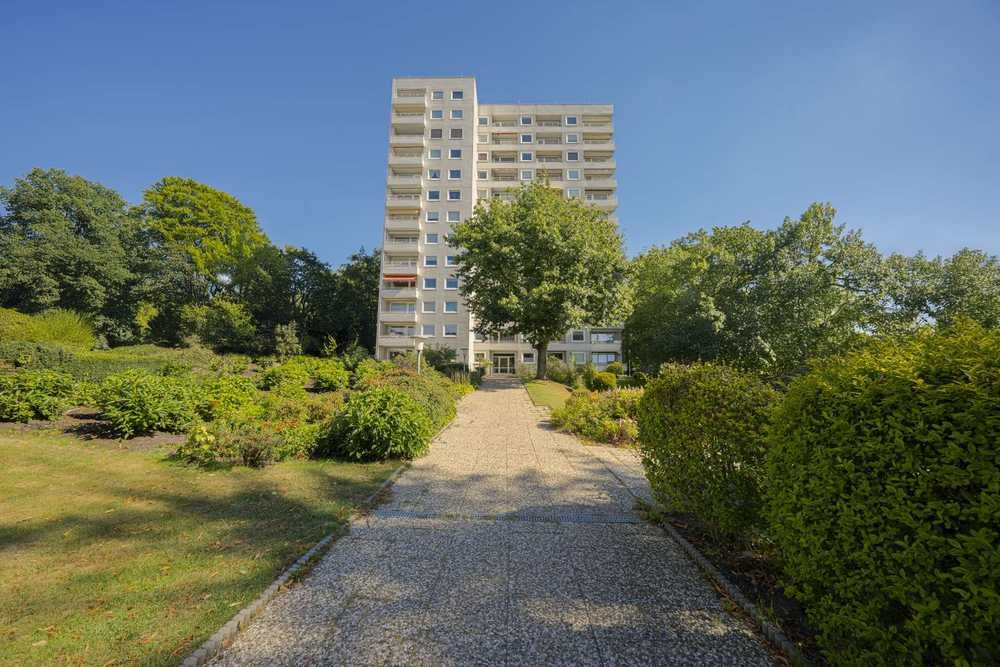 Im Schmiedesberg erwartet Sie eine vermietete helle 3,5-Zimmer-Endetagenwohnung, die auf ca. 100 m² großzügigen Wohnraum bietet. Diese Wohnung besticht durch ihre durchdachte Raumaufteilung und den einmaligen Weitblick aus dem 12. Obergeschoss. Ob als ideales Zuhause oder renditestarke Kapitalanlage – diese Immobilie erfüllt alle Wünsche. Die Wohnung bietet viel Platz für Ihre persönlichen Wohnideen. Der offene und großzügige Wohn-/Essbereich ist mit seinen großen Fensterflächen und der Süd-/Westausrichtung besonders lichtdurchflutet. Des Weiteren gibt es zwei geräumige Schlafzimmer, die viel Platz für persönliche Rückzugsorte bieten. Eine stilvolle Schiebetür verbindet diese beiden Zimmer und bietet große Gestaltungsmöglichkeiten. Das halbe Zimmer lässt sich flexibel als Arbeitszimmer, Ankleide oder Homeoffice nutzen. Für Ihre alltäglichen Bedürfnisse bietet die Wohnung ein modernes Badezimmer mit Dusche sowie ein praktisches Gäste-WC. Der nach Süden ausgerichtete Balkon sorgt den ganzen Tag für Sonne, während der zweite Balkon mit westlicher Ausrichtung den perfekten Platz für einen entspannten Start in den Tag bietet. Die voll ausgestattete Einbauküche lädt zu gemeinsamen Kochabenden ein und lässt keine Wünsche offen.